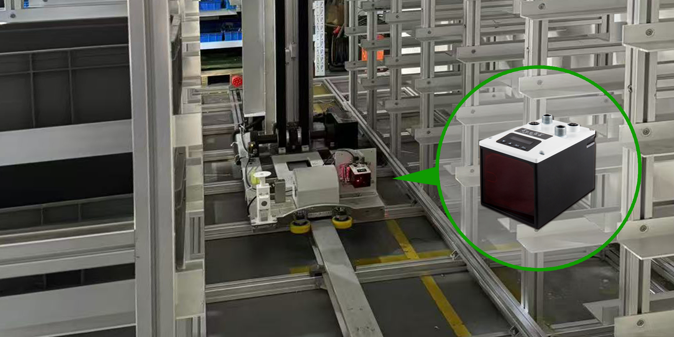 The ELCO OSM300 laser ranging sensor features a square, compact design with an integrated die-cast metal housing. Its clean, streamlined lines, sturdy structure, and moderate weight make it both durable and easy to install—striking a balance between practicality and usability. The optical laser positioning system enables fast, non-contact, and accurate distance measurement of mobile devices.